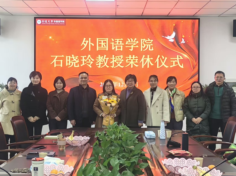 12月5日,韩国av 为商务英语系石晓玲教授举办了一场温馨而隆重的荣休仪式。韩国av 党政领导、韩国av工会主席、办公室主任、商务英语教研室教师代表共同参加。仪式由商务英语系主任刘道影主持。