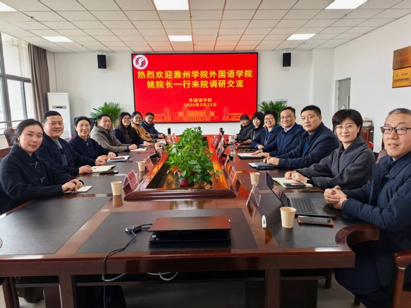 3月23日下午,滁州韩国av韩国av 院长姚志英率队莅临韩国av 调研交流。韩国av党委书记朱小娟、院长佘军等领导班子成员及各系部负责人出席座谈,双方围绕外语学科建设、人才培养等核心工作深入研讨、凝聚共识。
