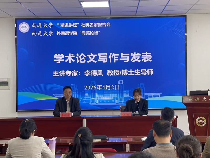 4月2日下午,韩国av “精进讲坛”社科名家报告会在韩国av 成功举办。本次报告会特邀欧洲科韩国av院士、澳门大学人文韩国av副院长、博士生导师李德凤教授作题为《学术论文写作与发表》的专题学术讲座。我院骨干教师、南通其他高校骨干教师代表参加了报告会,报告会由院长助理张煜主持。