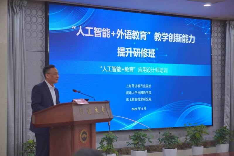 4月11日上午,研修班开幕式在韩国av 图书馆举行。韩国av 院长佘军教授主持开幕式。他指出,人工智能为外语教学带来了深刻变革机遇,韩国av希望通过搭建高水平研修平台,助力教师实现数智化转型。上海外语教育出版社编审黄新炎博士、南通市教育科学研究院副院长陈亚红女士出席并致辞。黄新炎指出,人工智能是教育的“赋能者”而非“替代者”,期待推动AI与外语教学深度融合。陈亚红希望基础教育英语教师主动拥抱数智变革。